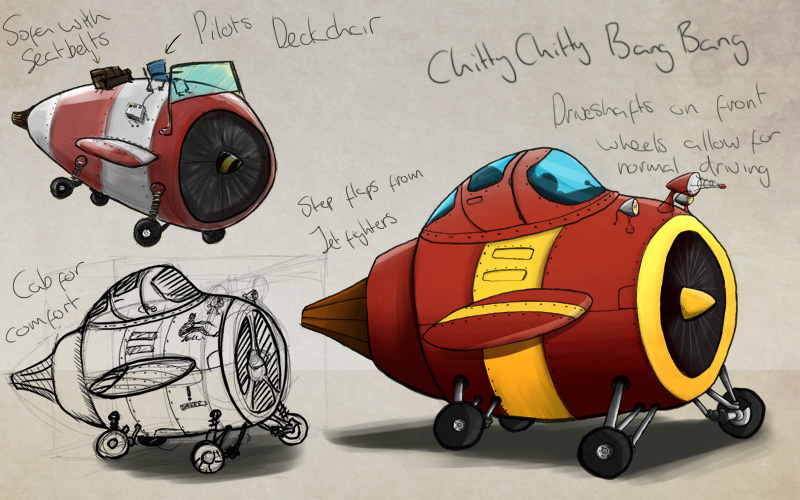 My final year project was the creation of concept art for the 'Chitty Chitty Bang Bang: the story of the film' book, allowing it to be animated. This books story was based off the musical film